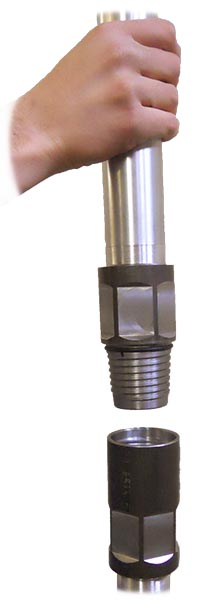 We have two different sizes available. On the smaller size, the aluminum has an OD of 1.95" and an ID of 1.375", with 2.5" OD steel end connections. Standard elevators for 1-1/2" pipe can be used with this AFP size. For the larger size, the aluminum OD is 2.91" and the ID is 2.1", with 3.5" OD steel ends connections. Standard elevators for 2-1/2" pipe can be used with this AFP size.