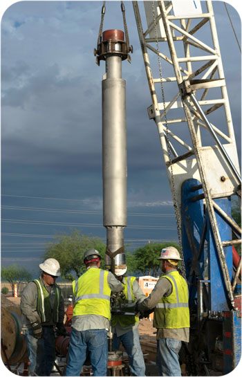 The InFlex™ Flow Control Valve (FCV™) is a fluid-actuated valve that permits pumping water to the surface or regulating the flow of water from the surface into the well, while using the same column pipe and maintaining a column of water in it at all times. The InFlex™ FCV™ may be used in conjunction with a submersible pump or a vertical turbine pump for Aquifer Storage and Recovery (ASR) and Aquifer Thermal Energy Storage (ATES) applications. Advantages of the InFlex™ FCV™ include: