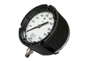 4.5" face pressure gauges can be added to regulators, airline manifolds, custom manifolds, or purchased separately for you to use in your existing control equipment. These gauges have an accuracy of ±0.5% and are available in a large variety of pressure ranges. The standard connection is a 1/4" male NPT stainless steel on the bottom of the gauge.